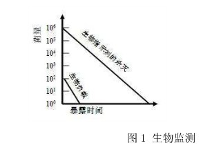 要尋找適合的滅菌監(jiān)控手段,shou先需了解影響滅菌效果的主要因素。在滅菌環(huán)境相同的情況下,產(chǎn)品上負載的微生物的抗力和數(shù)量,是影響滅菌效率的關鍵因素。通常,由于對于原材料的來源和微生物的數(shù)量有嚴格要求,加上對于儲存和生產(chǎn)車間的潔凈要求(不同產(chǎn)品有不同要求),在滅菌前所攜帶的微生物的數(shù)量是有限的。生物監(jiān)測使用所攜帶微生物的數(shù)量和抗力都遠大于實際生物負載的生物指示劑,與生物負載處于相同或更難滅菌的環(huán)境中(如將生物指示劑放置于過程挑戰(zhàn)設備{Process Challenge Device}中) 同時進行滅菌,然后觀察生物指示劑中微生物的殺滅情況,來判斷整個負載的有效性。圖1解釋了生物指示劑監(jiān)控整個負載并可靠反映其效果的原理:當生物指示劑被殺滅的時候,生物負載早已被殺滅了。
