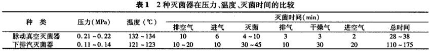表1   兩種滅菌器在壓力、溫度、滅菌時間的對比[2]