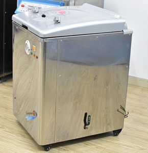 實(shí)驗(yàn)室中zui常見的高壓蒸汽滅菌器是重力置換式。飽和蒸汽通過蒸汽壓力控制閥進(jìn)入腔室的頂部。當(dāng)蒸汽進(jìn)入時(shí),它通過排水管中的疏水閥將空氣推出。抽空所有空氣后,疏水閥關(guān)閉。蒸汽繼續(xù)充滿高壓滅菌器腔室,直到達(dá)到預(yù)設(shè)的溫度和壓力。高壓釜的常見工作條件是121 oC和每平方英寸表壓(psig)15磅。